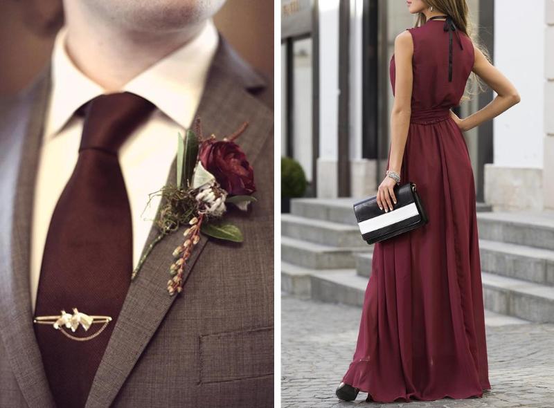 Молодожены могут облачиться в одежду бордового цвета, но это необязательно. Достаточно, чтобы их наряды включали в себя аксессуары изысканного гранатового цвета или украшения из соответствующих камней.